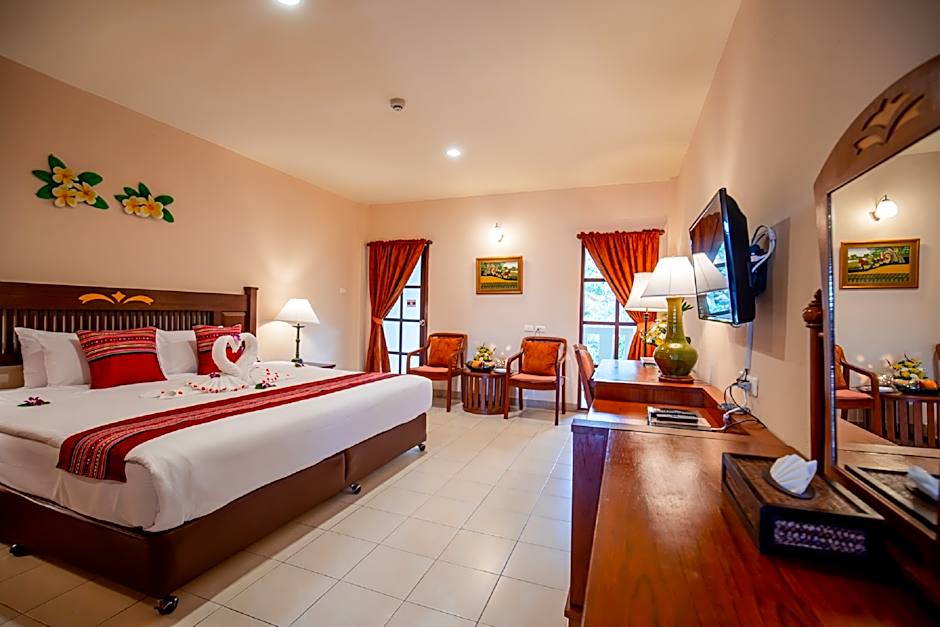 Superior Pool View Room is 409 square feet and includes either 2 single beds 80-130 width or a king-size bed 150-183 width plus balcony, desk, hairdryer, and tea and coffee making facilities .